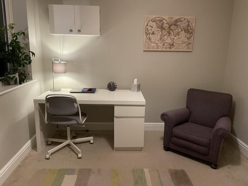 I have a therapy room in my family home in Aldington, Ashford, for in-person sessions. I also offer online or telephone sessions or walking sessions outdoors.